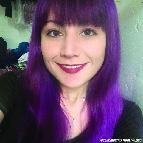Lolaćsailormidari Sage Quinsagequin Valentina. Here it is added to the roots. She kept her hair at about mid-length and added a rich purple to one.